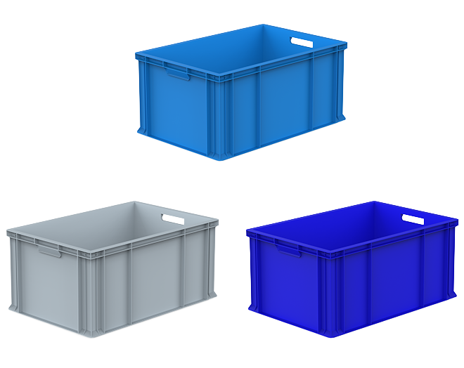 Plastik yanları ve altı kapalı kasa Dış ebatları: 400x600x280 mm